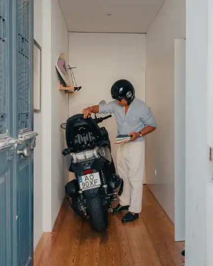 He uses his short scoot east from his home in the riverside neighbourhood of Lordelo do Ouro to the central Ribeira district to study the light on the water, stop at a portside café to see what the locals are wearing and unplug a little before the day ahead.