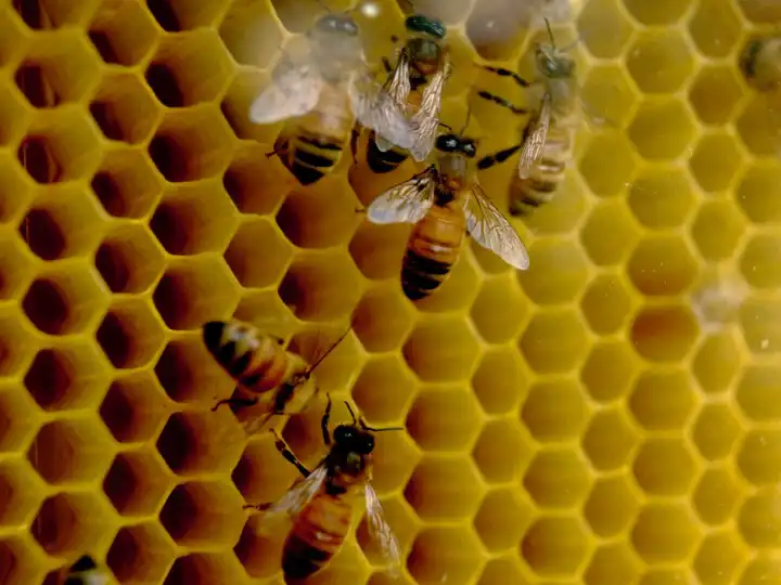 At the heart of the product is a series of rectangular plastic frames, which bees fill with wax and store honey inside, just as they would a honeycomb. To collect its contents, the beekeeper inserts a “flow key” into the top of the hive and turns it, causing the honeycomb cells inside to break. Golden honey then flows through sealed channels inside the frame and out through tubes into collection jars. Unlike conventional apiaries, which require complex equipment to extract honey from hives, the Andersons’ solution requires minimal fuss.